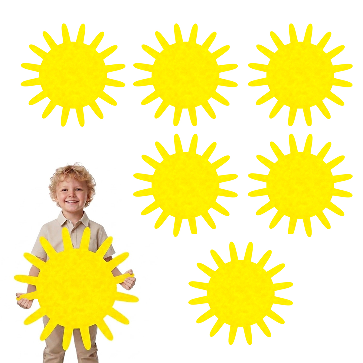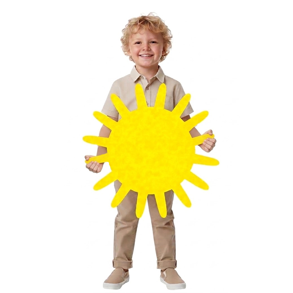 Są to produkty typu maxi-front - jednowarstwowe elementy wycięte z najwyższą precyzją, które mimo swoich dużych gabarytów zachowują lekkość i formę. Brak dodatkowych zdobień sprawia, że słońca są niezwykle uniwersalne: możesz je dowolnie personalizować, naszywać na nie mniejsze elementy lub wykorzystać jako efektowny panel dekoracyjny na ścianę, okno czy witrynę sklepową. Wykonane z trwałego filcu w kolorze żółtym, będą cieszyć oko przez długi czas. To prosty, a jednocześnie niezwykle efektowny dodatek, który sprawdzi się przy okazjach takich jak Dzień Wiosny, szkolne przedstawienia czy jako element aranżacji pokoju dziecięcego!