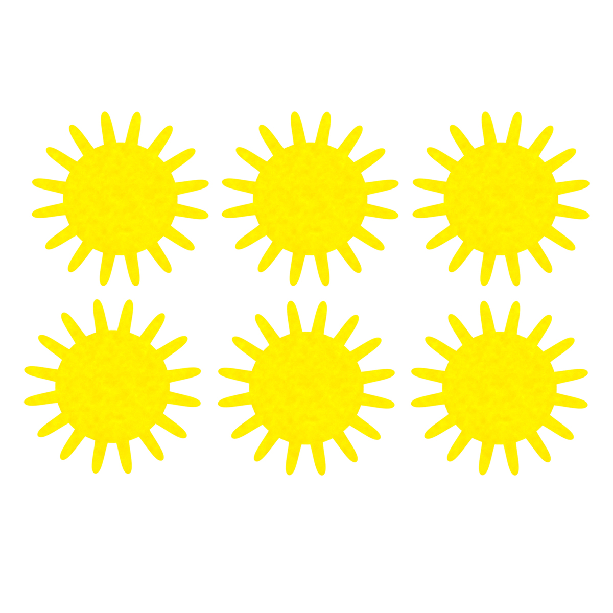 Szukasz wyrazistego elementu dekoracyjnego, który nada charakteru Twoim projektom lub wnętrzu? Tych sześć dużych, żółtych słońc wykonanych z wysokiej jakości filcu to idealne rozwiązanie! Dzięki imponującym wymiarom - 36 x 36 cm - przyciągają wzrok i stanowią doskonałą bazę do dalszej twórczości lub samodzielną ozdobę.