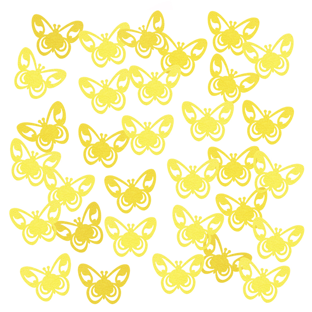 Przygotuj się na Bal Wiosny lub Dzień Zwierzątek! Ten zestaw małych żółtych motylków z filcu to idealny sposób na szybką i efektowną dekorację Twojego domu lub stroju! Motylki, wycięte z wysokiej jakości filcu, posiadają wycięte detale, które nadają im uroczy, uśmiechnięty wyraz!