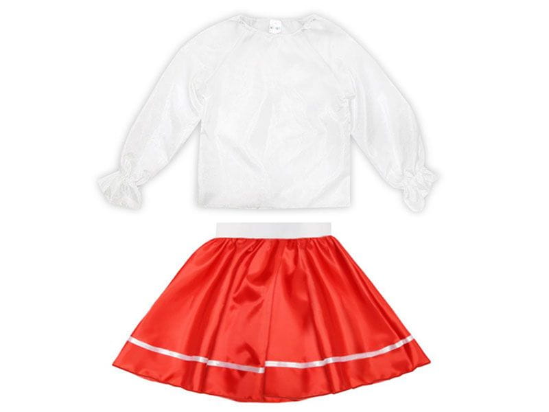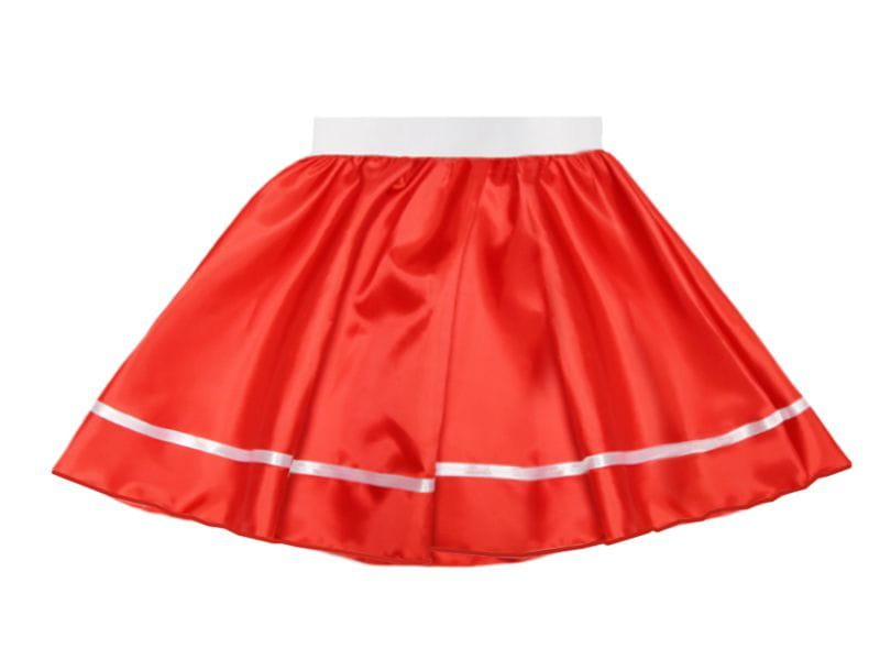 - czerwonej spódniczki na gumce z białą lamówką