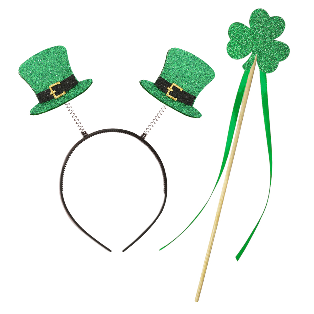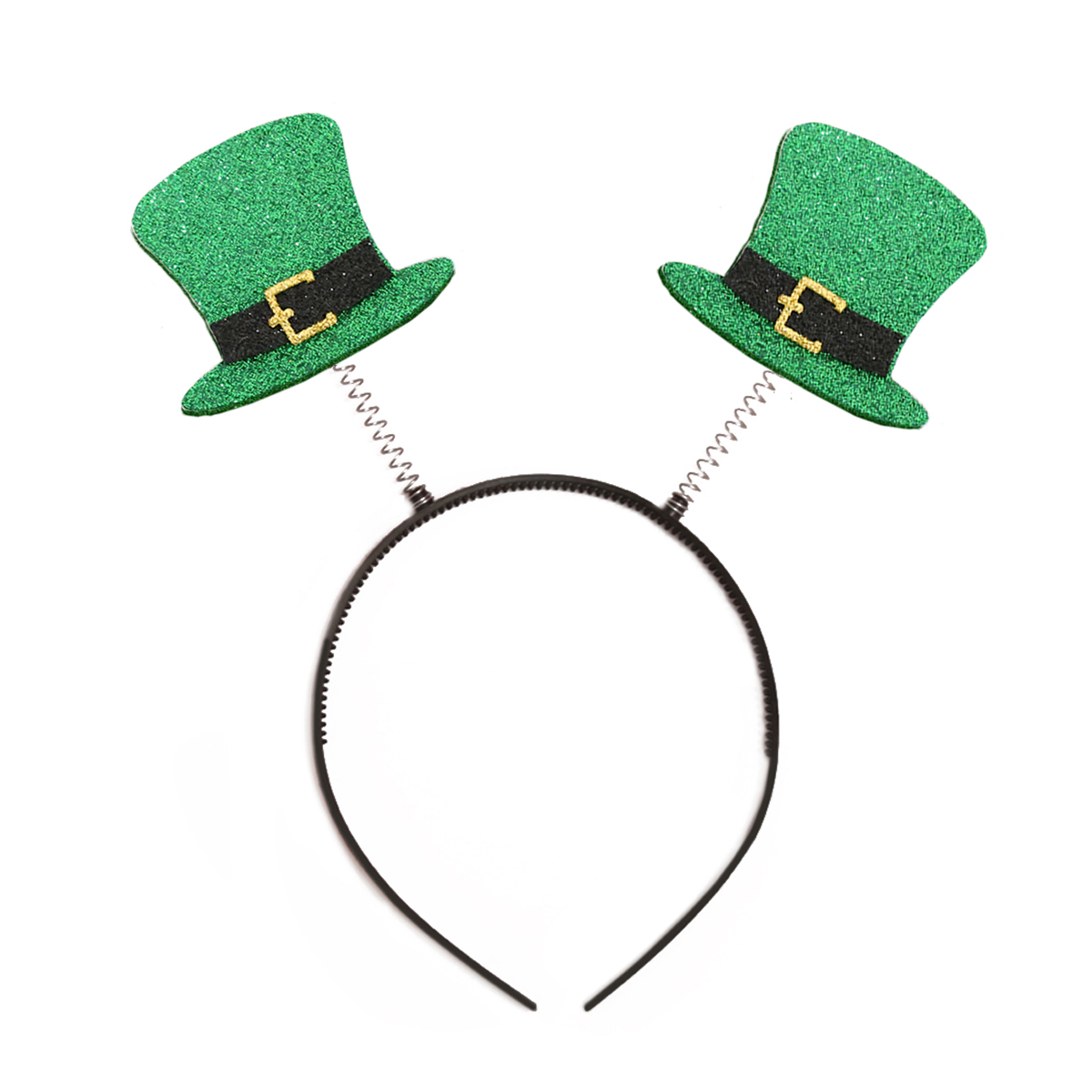 - opaska Świętego Patryka - osadzona jest na elastycznej opasce z dwiema sprężynkami, na których radośnie podskakują dwa piankowe, brokatowe kapelusiki Świętego Patryka: