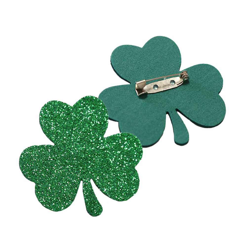 - przypinka koniczynka - piankowy emblemat w kształcie zielonej koniczynki posiada przymocowaną z tyłu metalową agrafkę, dzięki której łatwo przypiąć ozdobę do ubrań, toreb i innych powierzchni.
