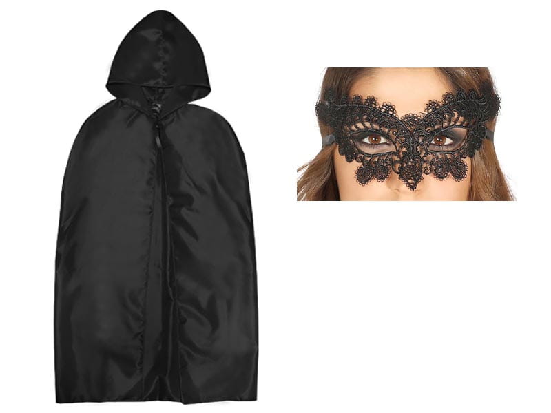 ZESTAW WAMPIRZYCA CZARNY PELERYNA 132cm 2el