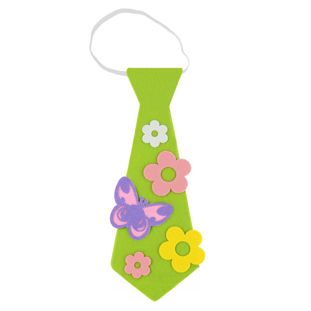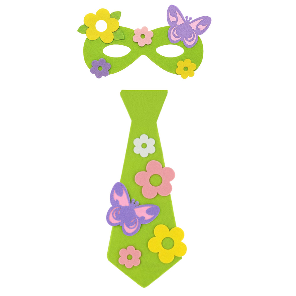 - jasnozielony krawat wykonany z filcu i ozdobiony filcowymi kwiatkami w pastelowych kolorach, mocowany na elastycznej gumeczce.