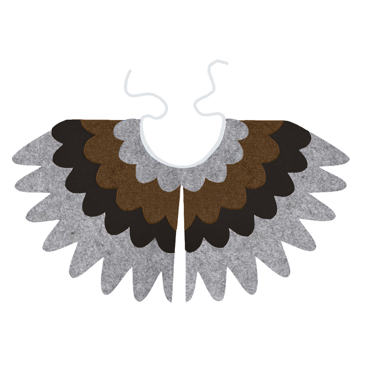 - filcowa peleryna w kształcie skrzydełek wykonana z kilku kolorowych warstw filcu w starannie dobranych kolorach, które oddają charakterystyczne ubarwienie wróbla,