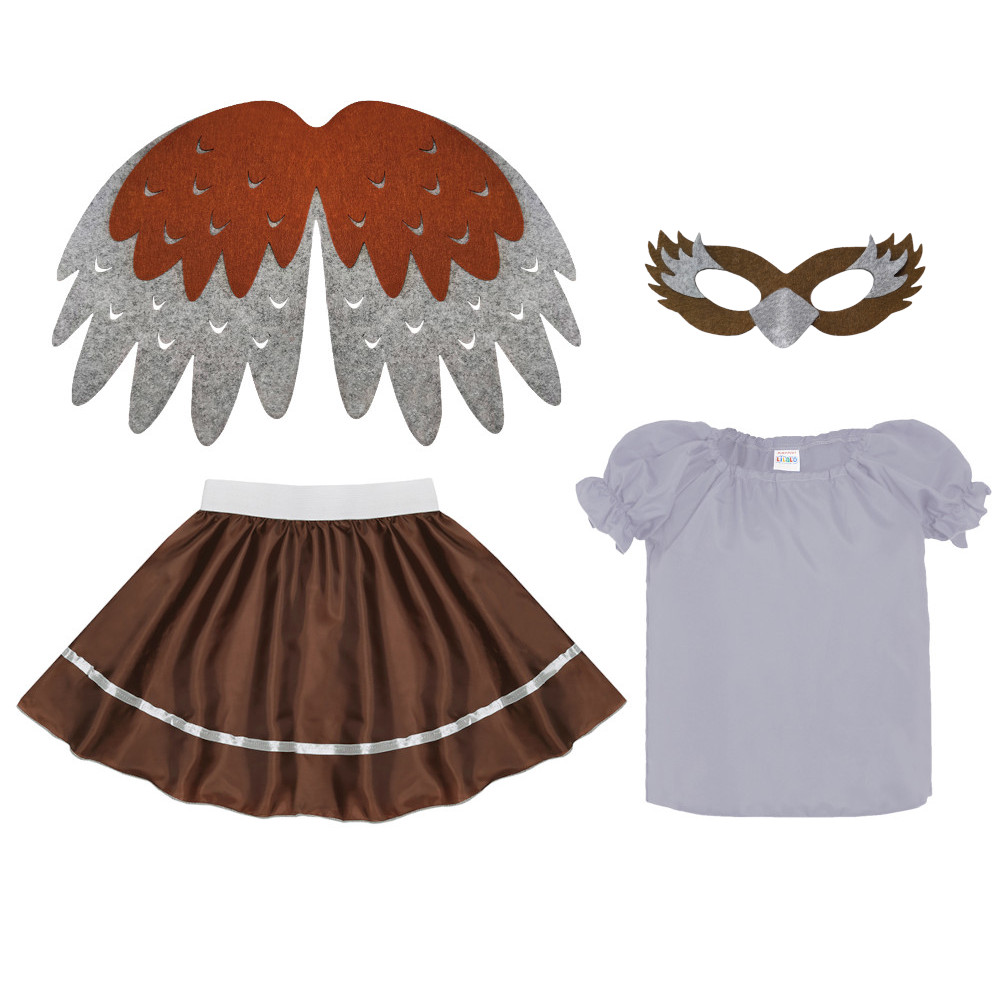 Strój nada się idealnie do przebrania wróbelka, sowy, kopciuszka, jastrzębia, zięby i wielu innych uroczych ptaszków, otwierając drzwi do świata wyobraźni!