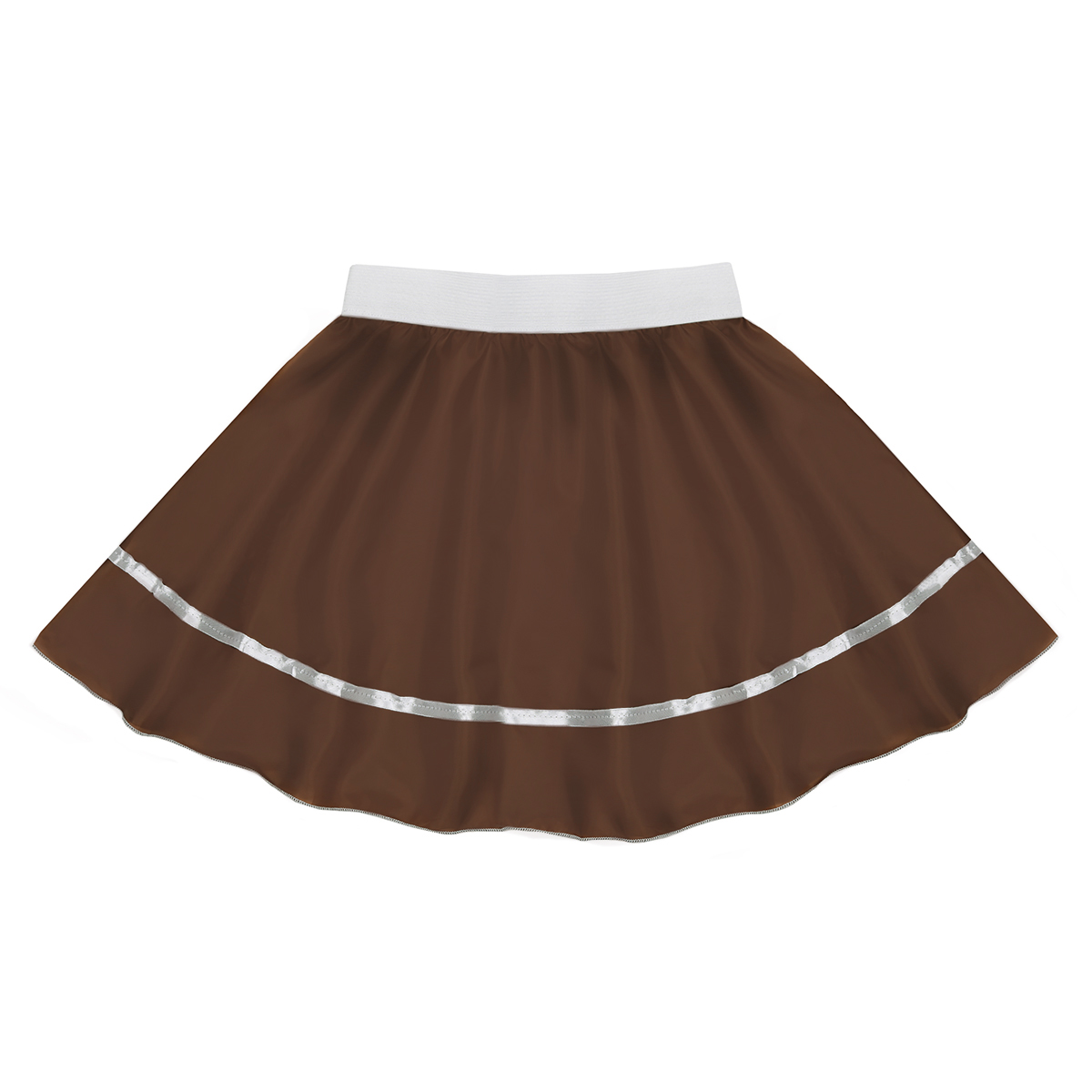 - brązowa spódniczka wyposażona we wszytą w pasie elastyczną gumeczkę.