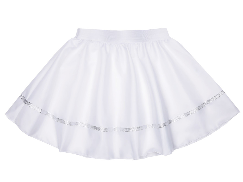 - biała spódniczka - uszyta z niegniotącego się materiału pongee posiada wszytą w pasie gumkę, doskonale dopasowując się do ciała.
