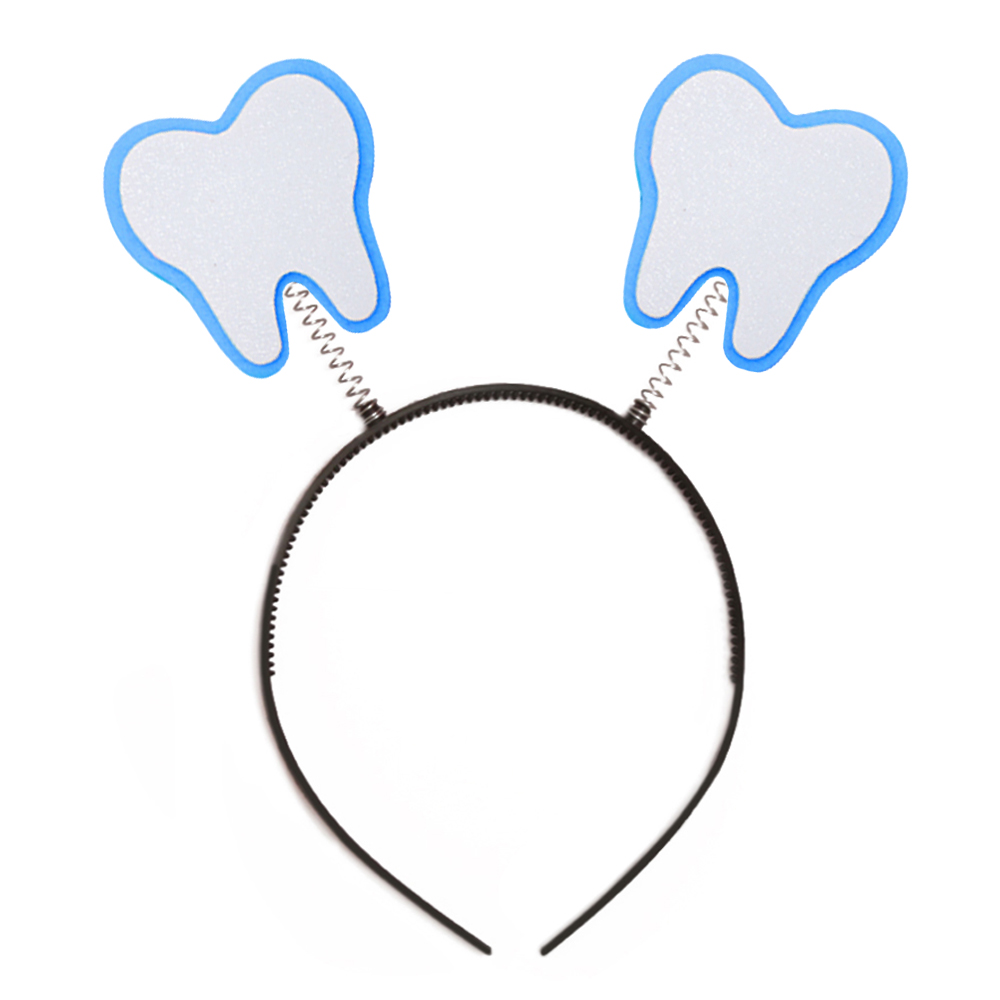 - opaska Wróżka Zębuszka - plastikowa opaska wyposażona jest w dwie elastyczne sprężynki, na których radośnie podskakują DWA biało-błękitne ząbki: