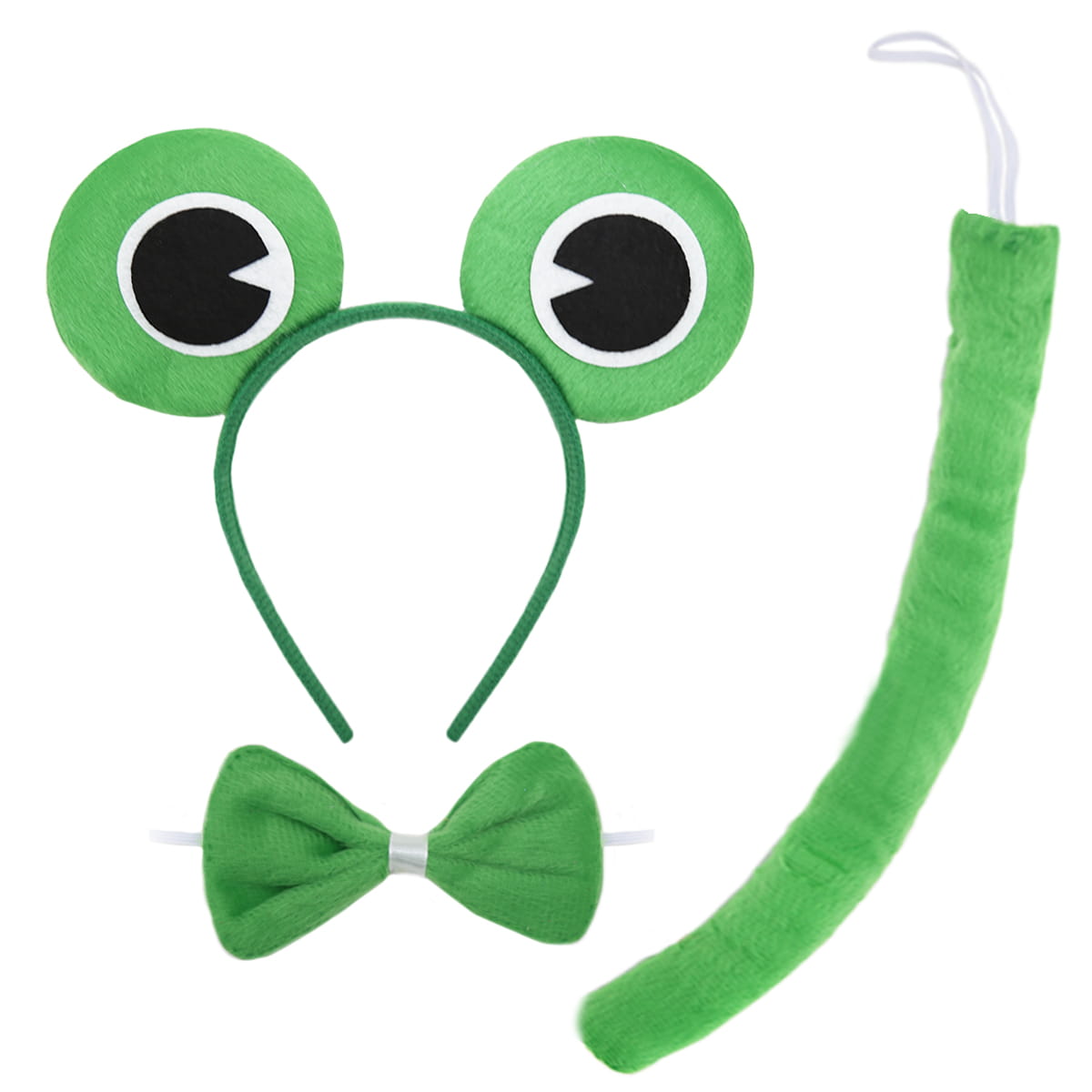 Pluszowa opaska z oczkami, zielona muszka oraz ogonek na gumce