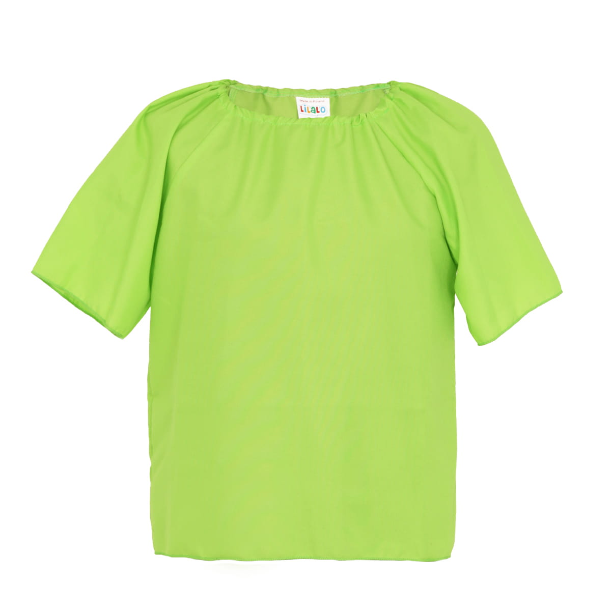 — zielona bluzka z krótkim rękawem i regulowanym dekoltem,