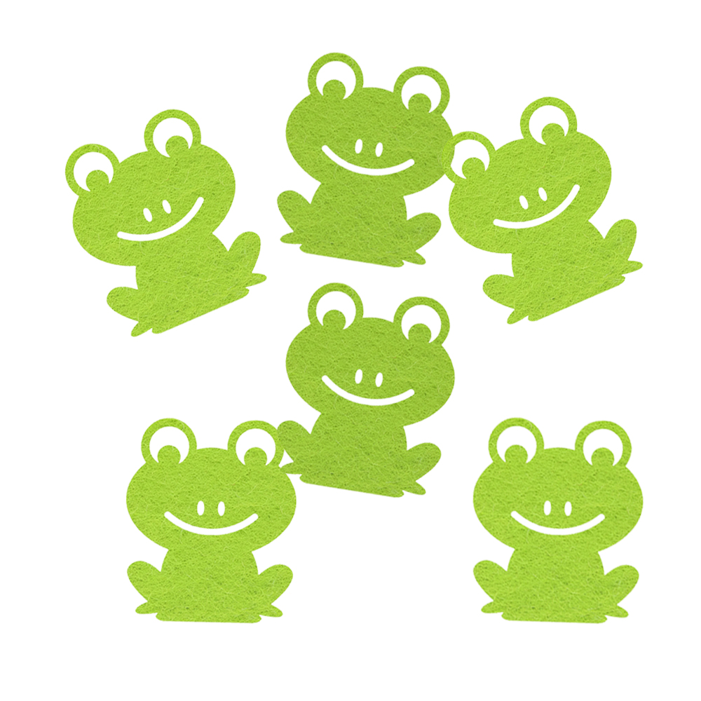 Przygotuj się na Bal Wiosny lub Dzień Zwierzątek! Ten zestaw małych zielonych żabek z filcu to idealny sposób na szybką i efektowną dekorację Twojego domu lub stroju! Żabki, wycięte z wysokiej jakości filcu, posiadają wycięte detale, które nadają im uroczy, uśmiechnięty wyraz!