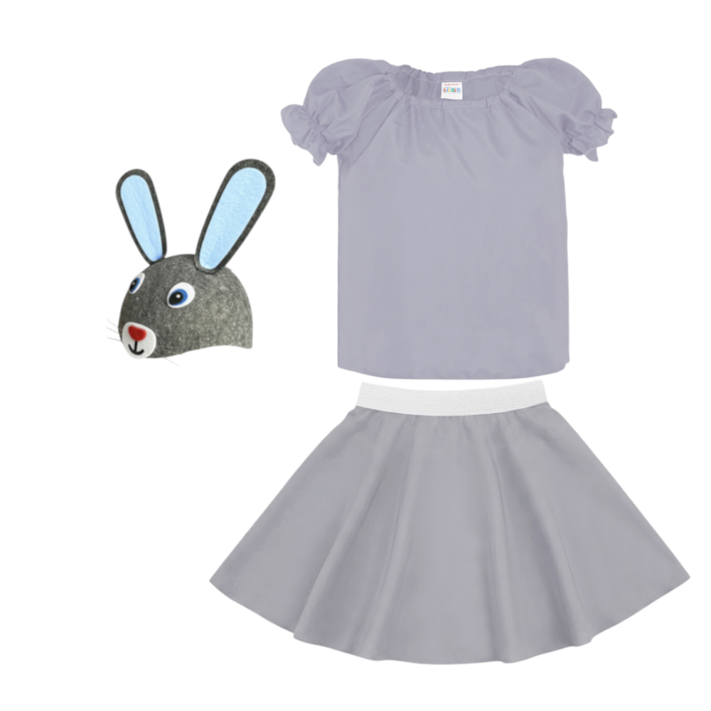 Strój zajączek szaro-niebieski sprawdzi się doskonale na bal przebierańców, szkolny teatrzyk i wiele innych przebrań!