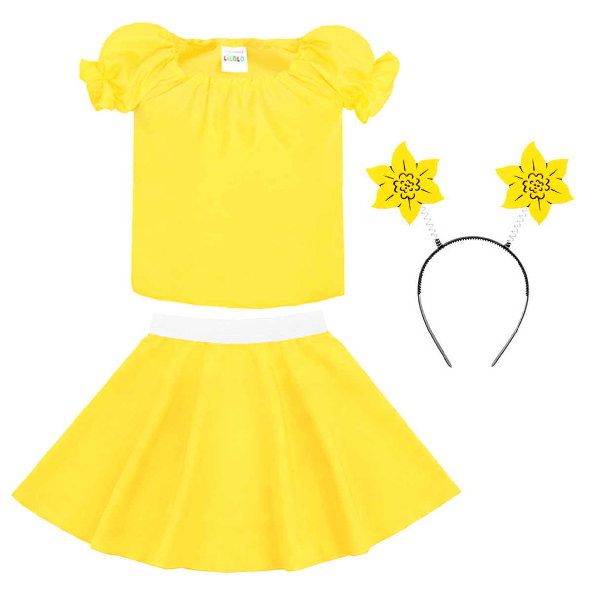 - żółta spódniczka - z wszytą gumką w pasie, wykonana z lekkiego i zwiewnego materiału.