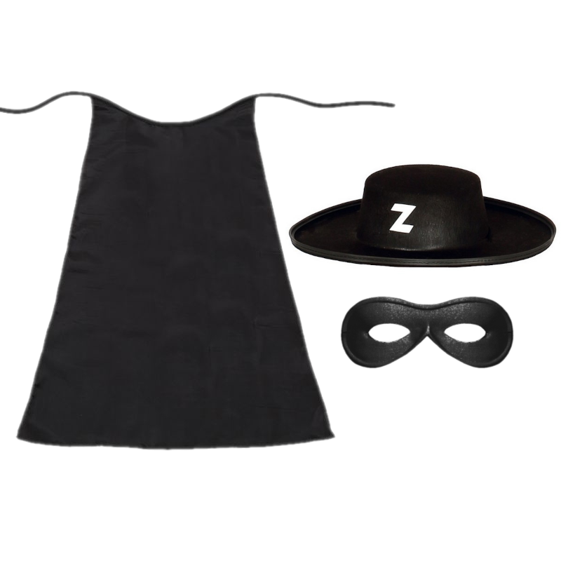 ZESTAW ZORRO CZARNY PELERYNA 55cm 3el