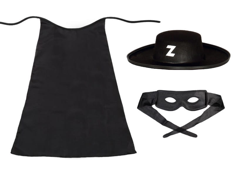 ZESTAW ZORRO CZARNY PELERYNA 90cm 3el