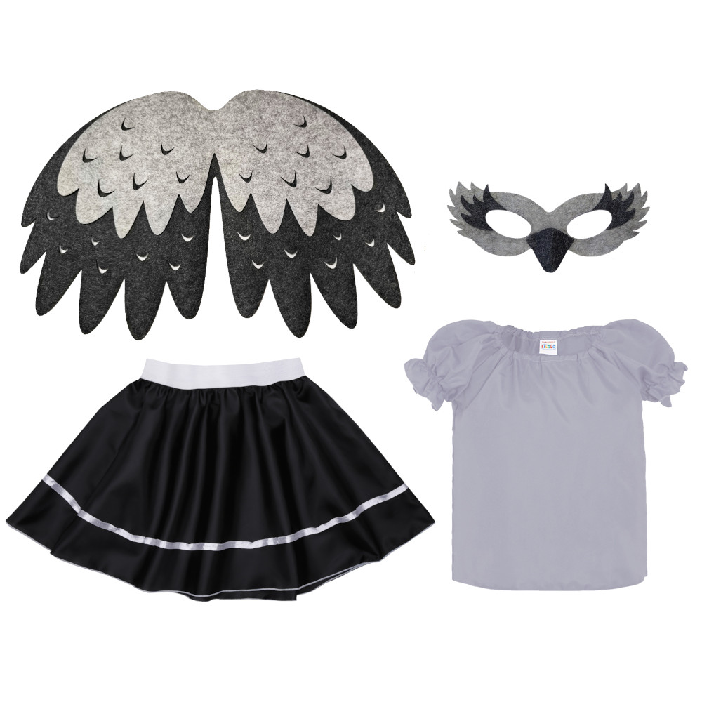 Strój nada się idealnie do przebrania gołębia, żurawia, kawki, czapli, wrony, pliszki, jastrzębia i wielu innych uroczych ptaszków, otwierając drzwi do świata wyobraźni!