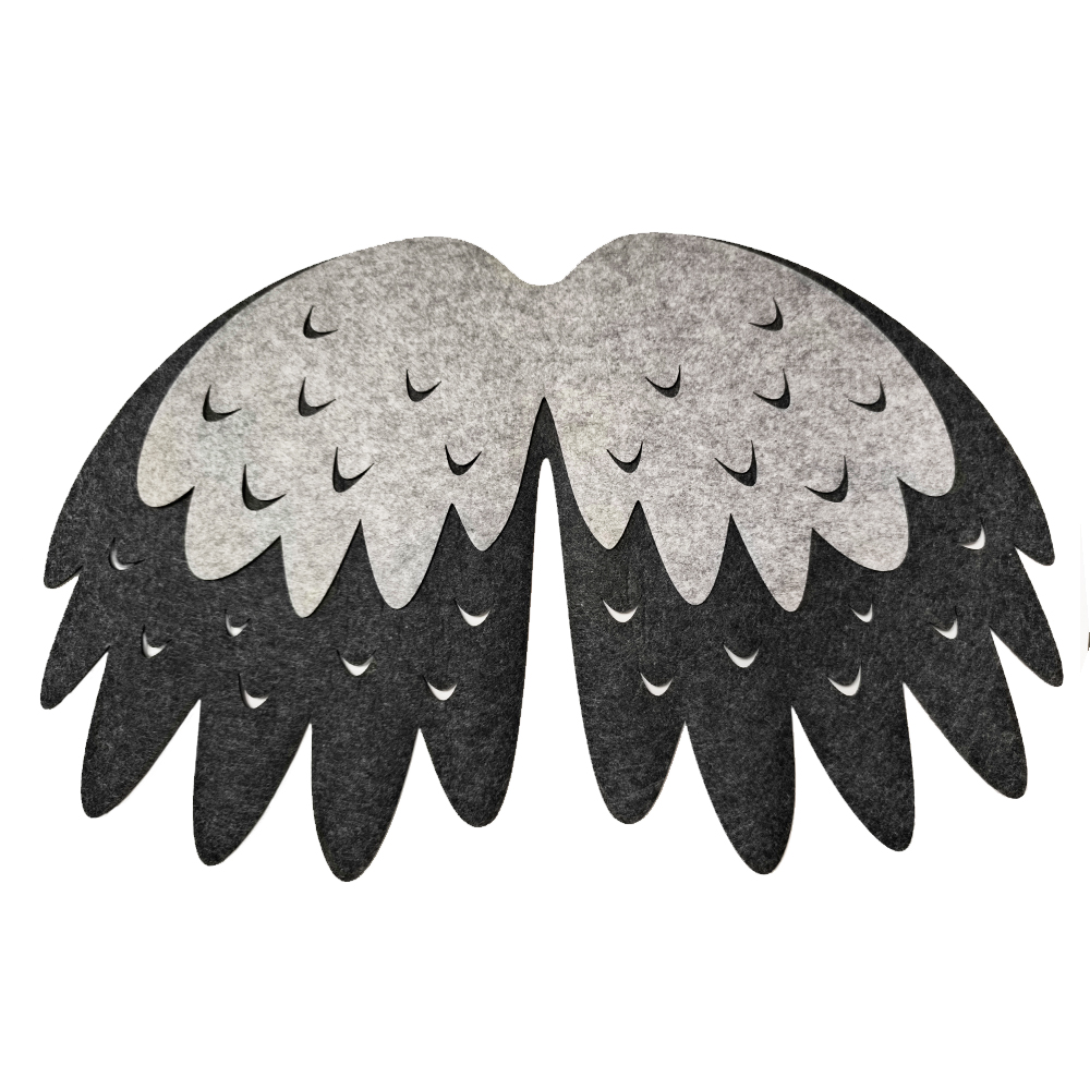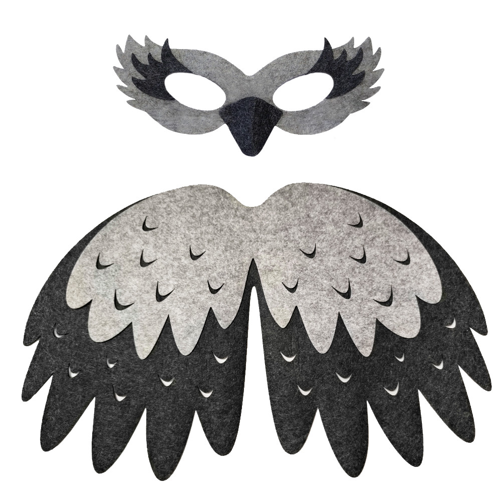 - filcowa peleryna w kształcie skrzydełek - wykonana z dwóch warstw filcu w szarych odcieniach, które oddają charakterystyczne ubarwienie tego ptaka.